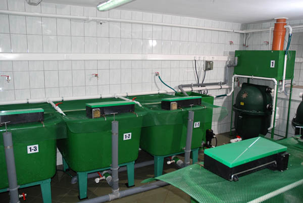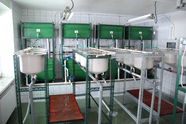 - obiegi recyrkulacyjne umożliwiające prowadzenie doświadczeń podchowowych w skali laboratoryjnej (fot.1), półtechnicznej (fot. 2) i technicznej (fot. 3);