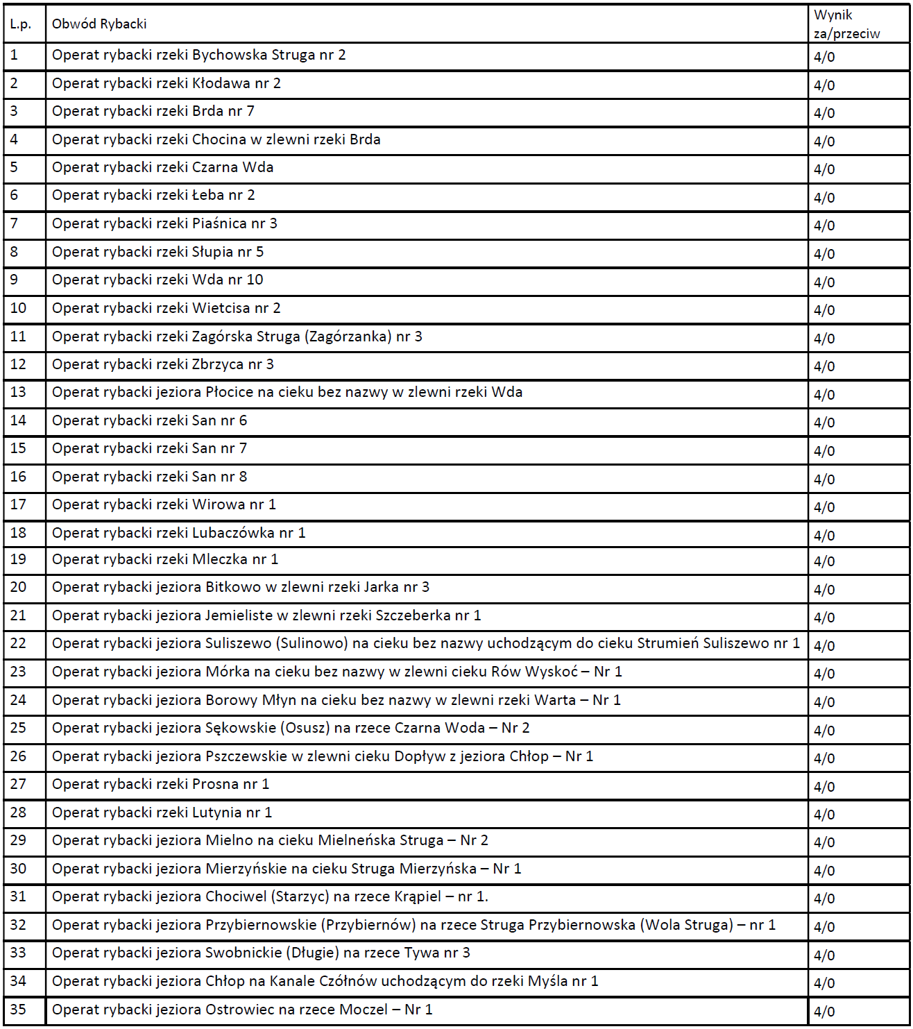 Opiniowane były operaty rybackie następujących obwodów: