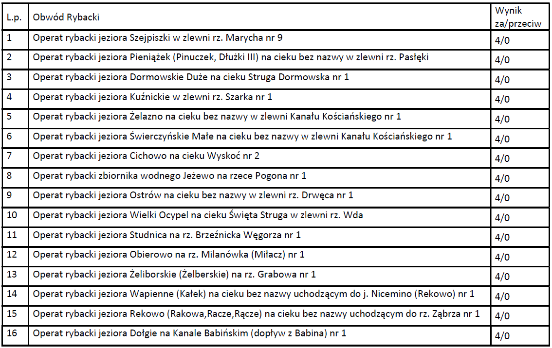 Informujemy, że dnia 26 stycznia 2023 roku odbyło się posiedzenie Zespołu Opiniującego Operaty Rybackie. Opiniowane były operaty rybackie następujących obwodów: