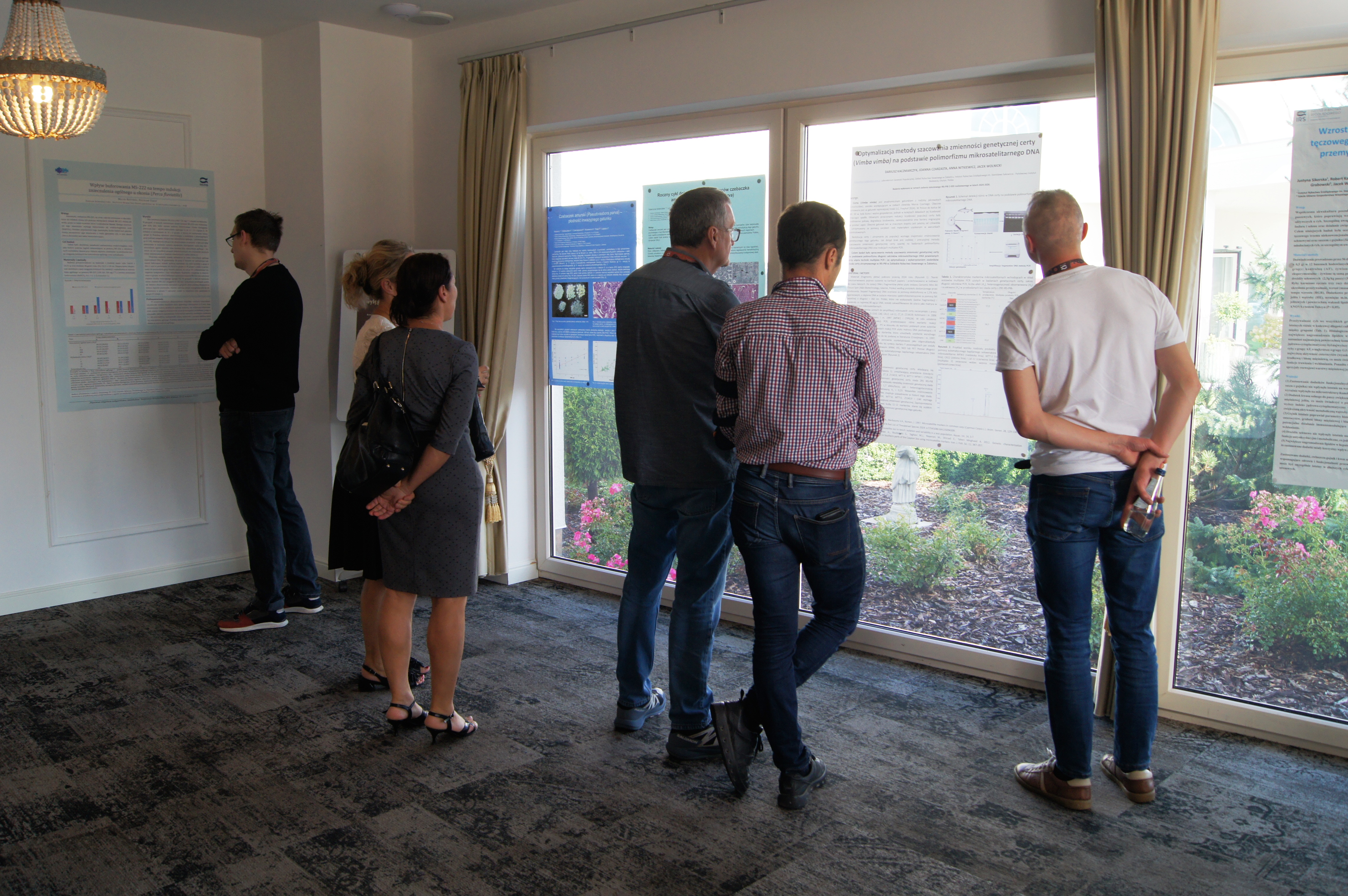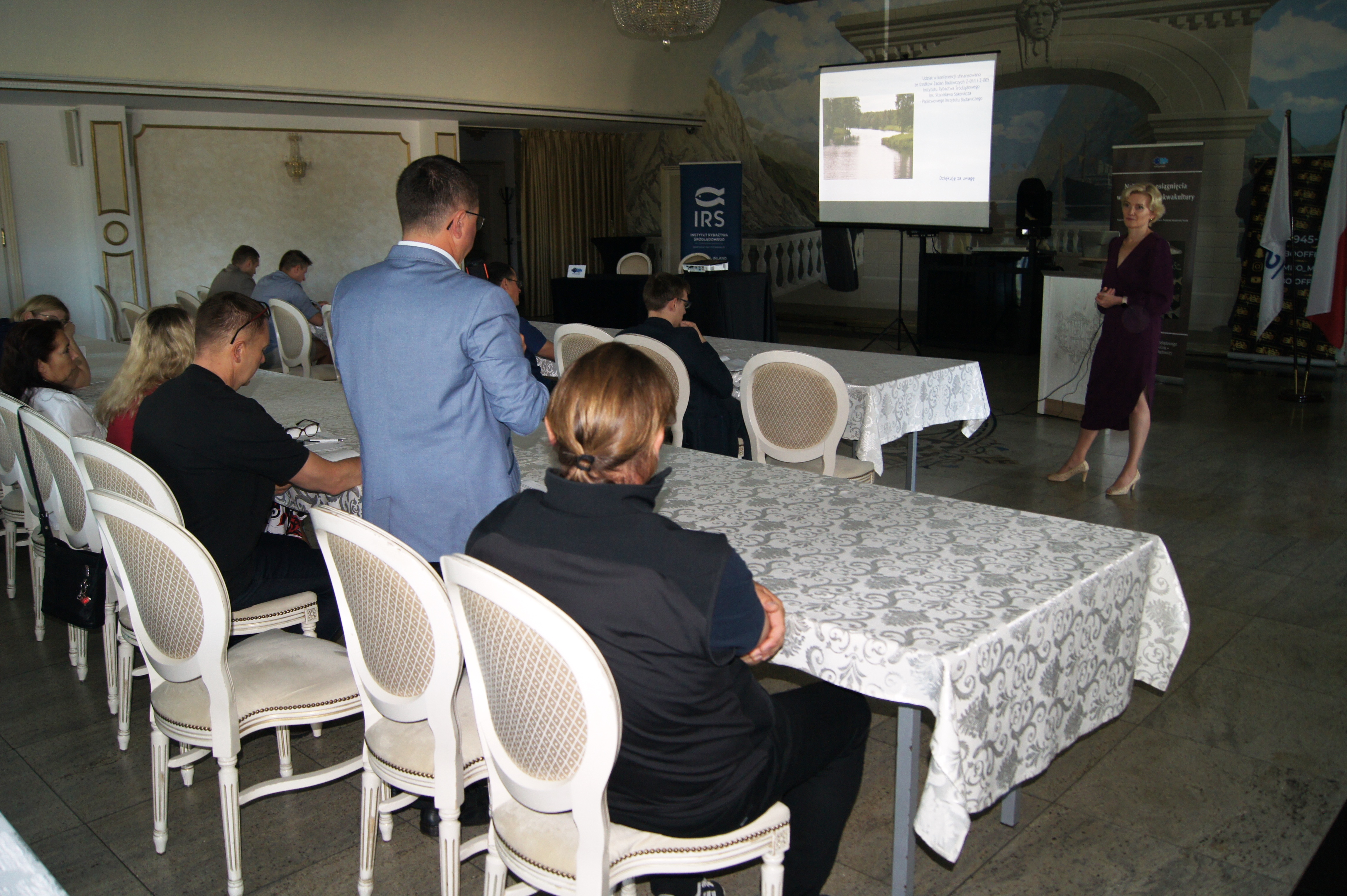 Organizatorem wydarzenia był Zakład Akwakultury Instytutu Rybactwa Śródlądowego im. Stanisława Sakowicza – Państwowy Instytut Badawczy (IRS-PIB) (fot. 2., od lewej strony mgr Michał Cydzik, dr hab. Agata Cejko, dr Maciej Rożyński, mgr Marek Hopko, prof. hab. Zdzisław Zakęś – nieobecny na fotografii). Konferencja zgromadziła 57 uczestników, w tym przedstawicieli instytucji naukowych, praktyków branży rybackiej oraz reprezentantów administracji publicznej odpowiedzialnych za sektor rybactwa (fot. 3 i 4). Patronat honorowy nad wydarzeniem po raz kolejny objął Komitet Nauk Zootechnicznych i Akwakultury Polskiej Akademii Nauk, co dodatkowo podkreśliło jego rangę w krajowym środowisku naukowym. Tegoroczna edycja odbyła się pod hasłem „Najnowsze osiągnięcia wylęgarnictwa i akwakultury”, koncentrując się na innowacyjnych rozwiązaniach biotechnologicznych, które odpowiadają na współczesne wyzwania związane z bezpieczeństwem żywnościowym, kurczeniem się zasobów naturalnych oraz przełowieniem dzikich populacji ryb. Akwakultura, jako jeden z najszybciej rozwijających się sektorów produkcji żywności, wymaga dziś nie tylko intensyfikacji, ale także wdrażania nowych rozwiązań zgodnych z zasadami zrównoważonego rozwoju.